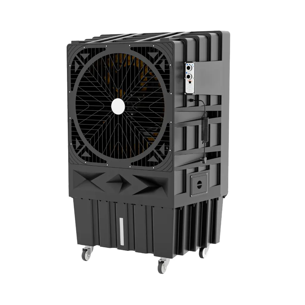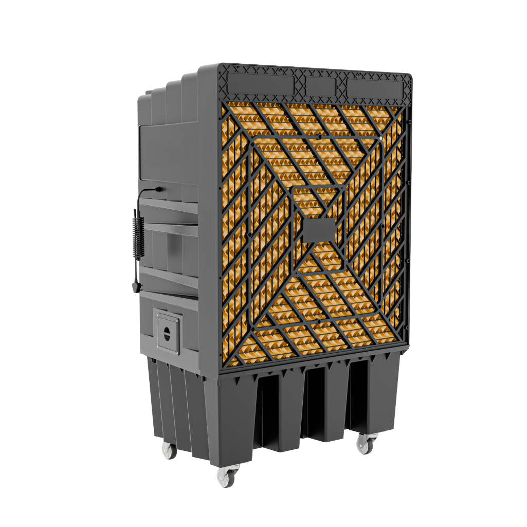 Diseñado con un potente ventilador axial (24.5″) y un flujo de aire de 7357 CFM, garantiza un suministro de aire de amplio alcance. Ideal para espacios grandes como salones de banquetes, zonas para fiestas y hoteles, proporciona una refrigeración uniforme incluso en zonas concurridas.