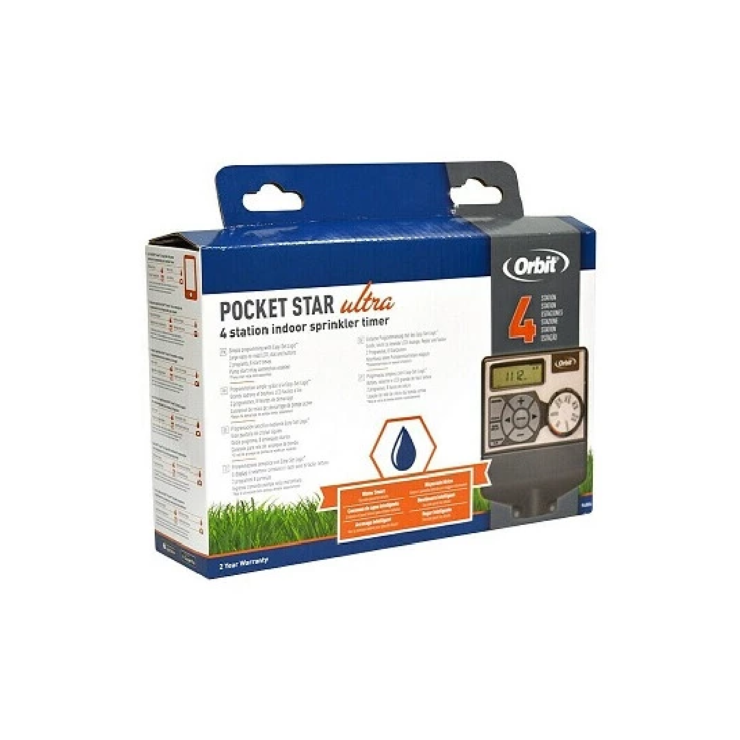 Con el programador de riego Orbit PocketStar de 4 estaciones, ganarás en tranquilidad, ahorrarás tiempo cada semana y podrás centrarte en lo importante: disfrutar de un jardín sano, verde y siempre a punto. Porque tenerlo todo bajo control no debería costarte esfuerzo.